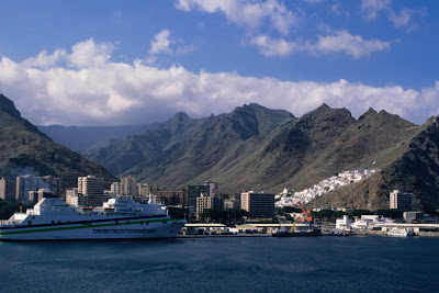 Come vedete da questa foto, c’è una specie di corridoio di terra che si protrae nel mare. Santa Cruz non ha questa particolarità, è una città incastonata tra le montagne (bellissime) che ha dato spazio al porto gigantesco e che ha dovuto fabbricarsi la propria spiaggia artificialmente e nemmeno poi così vicina alla città (Playa Las Teresitas).